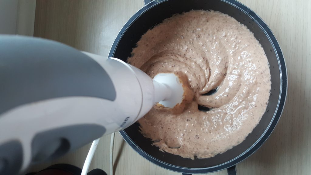 – do masy dodajemy łyżkę ubitych białek i miksujemy delikatnie wszystko przez kilkanaście sekund – to pomoże usunąć ewentualne małe kawałki fasoli, których nie udało Wam się zblendować blednerem