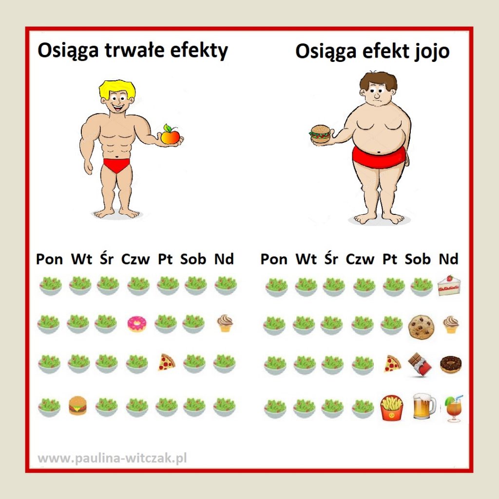 Stąd, że ludzie dostając jadłospis/zalecenia dietetyczne myślą: okej, dieta na miesiąc, dwa, trzy – zepnę się i dam radę! Tkwią w tym ,,przymusie” wyczekując tylko końca. Chudną, osiągają cele i… wracają do dawnych nawyków. Uważam, że jest to częściowo wina nudnych, niskokalorycznych i monotonnych diet, jakie niestety czasem przepisują pseudo specjaliści, po drugie: wina braku edukacji żywieniowej pacjentów, po trzecie: czasem danej osoby, która nie chce zrozumieć pewnych faktów i przyjąć do wiadomości tego, że chcąc fajnie wyglądać, musi też dać trochę od siebie.